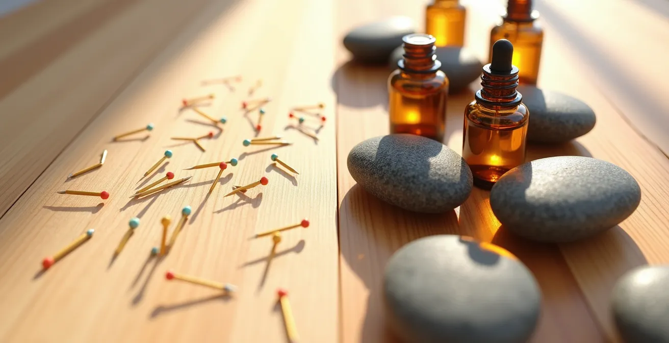 L’acupuncture n’est pas une alternative au massage, mais une approche complémentaire qui s’attaque aux racines énergétiques et nerveuses du mal de dos, là où le massage agit principalement sur la mécanique musculaire.