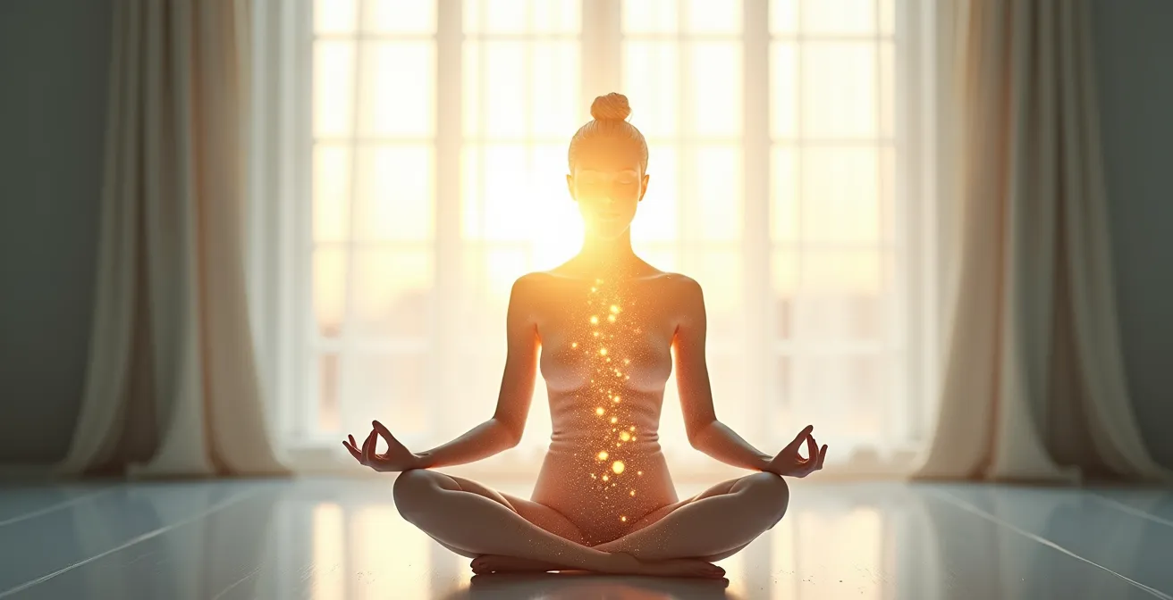 Avant même d’aborder les mécanismes cellulaires du jeûne, il est crucial de comprendre un prérequis fondamental : le pouvoir de l’esprit sur le corps. L’engagement dans une pratique comme le jeûne intermittent n’est pas qu’un acte mécanique, c’est une décision consciente qui mobilise nos ressources internes. La conviction profonde que nous agissons pour notre bien-être est le premier catalyseur de la guérison. C’est ce que la science nomme l’effet placebo, un phénomène loin d’être anecdotique. Des études confirment qu’en moyenne, on observe plus de 30% d’amélioration moyenne avec l’effet placebo dans divers contextes cliniques. Ce n’est pas de la magie, mais de la pure neurobiologie.