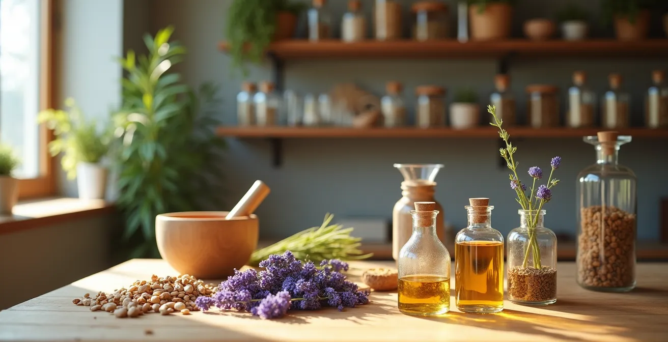 L’image ci-dessus illustre la diversité des textures et des approches. Une fleur délicate comme la camomille ne se traite pas comme une racine dure de gingembre. L’infusion, qui consiste à verser de l’eau frémissante sur les parties fragiles (fleurs, feuilles), est idéale pour extraire les huiles essentielles volatiles sans les dégrader. À l’inverse, la décoction, où l’on fait bouillir les parties dures (racines, écorces, graines) pendant 15 à 30 minutes, est nécessaire pour libérer les tanins et les minéraux solidement enfermés dans les fibres. Enfin, la macération à froid ou dans l’huile permet d’extraire des principes sensibles à la chaleur ou solubles dans les graisses.